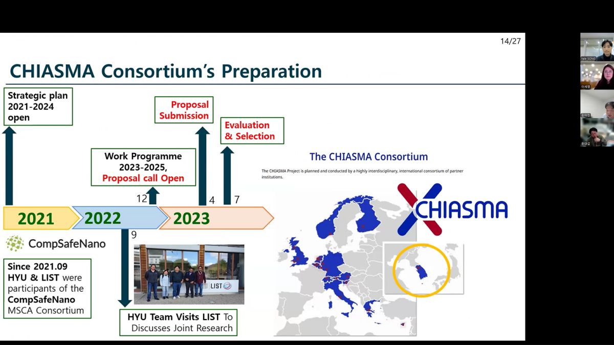 당사의 CEO인 Tae Hyun Yoon 교수는 지난 12월 10일 화요일 KOREA-EU Research Centre 웨비나에서 Horizon Europe(CHIASMA Project )의 사례를 연구원들에게 공유하고 소개했습니다.