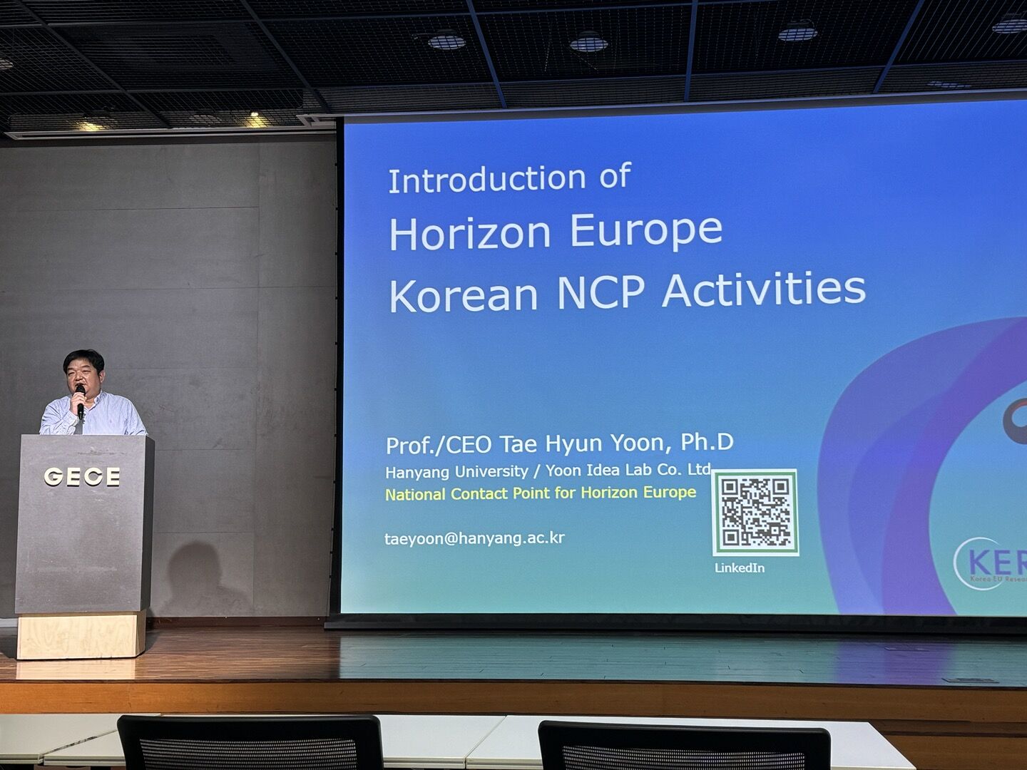 Yoon Idea Lab. Co., Ltd.의 CEO인 Tae Hyun Yoon 교수님을 Horizon Europe의 한국 국가 연락 창구로 초청하여 강연을 하게 된 것을 기쁘게 생각합니다. 윤 교수의 발표는 "한국형 NCP 시스템"을 주제로 진행되었으며, 벤치마킹 사례를 바탕으로 한국형 NCP 시스템의 현황과 향후 운영 방안을 소개하였습니다.
