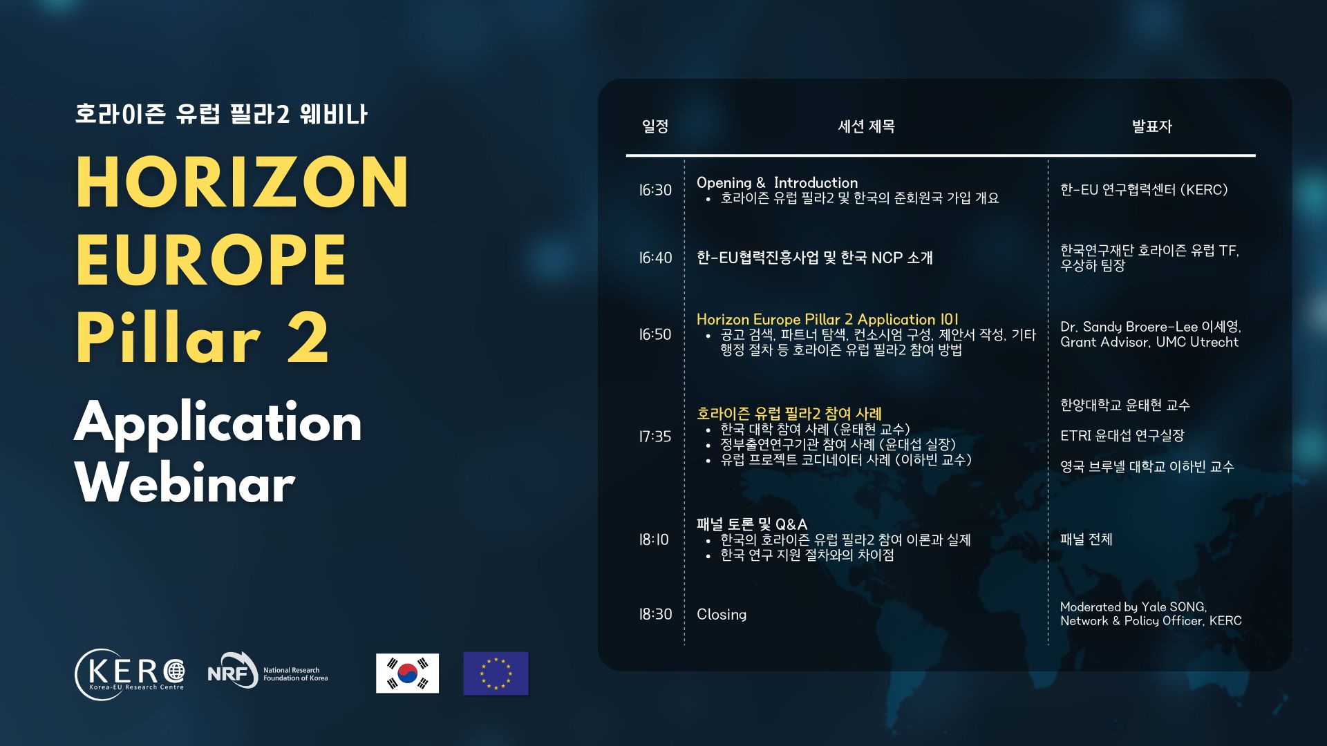 KOREA-EU Research Centre webinar, Horizon Europe 참여 프로젝트 경험 공유