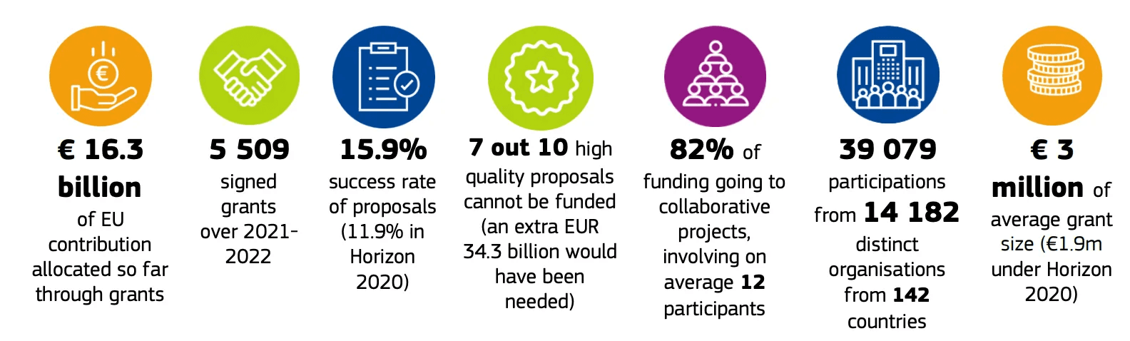 ✅ 평균 15.9% – 이전 프로그램인 호라이즌 2020의 11.9%보다 개선됨