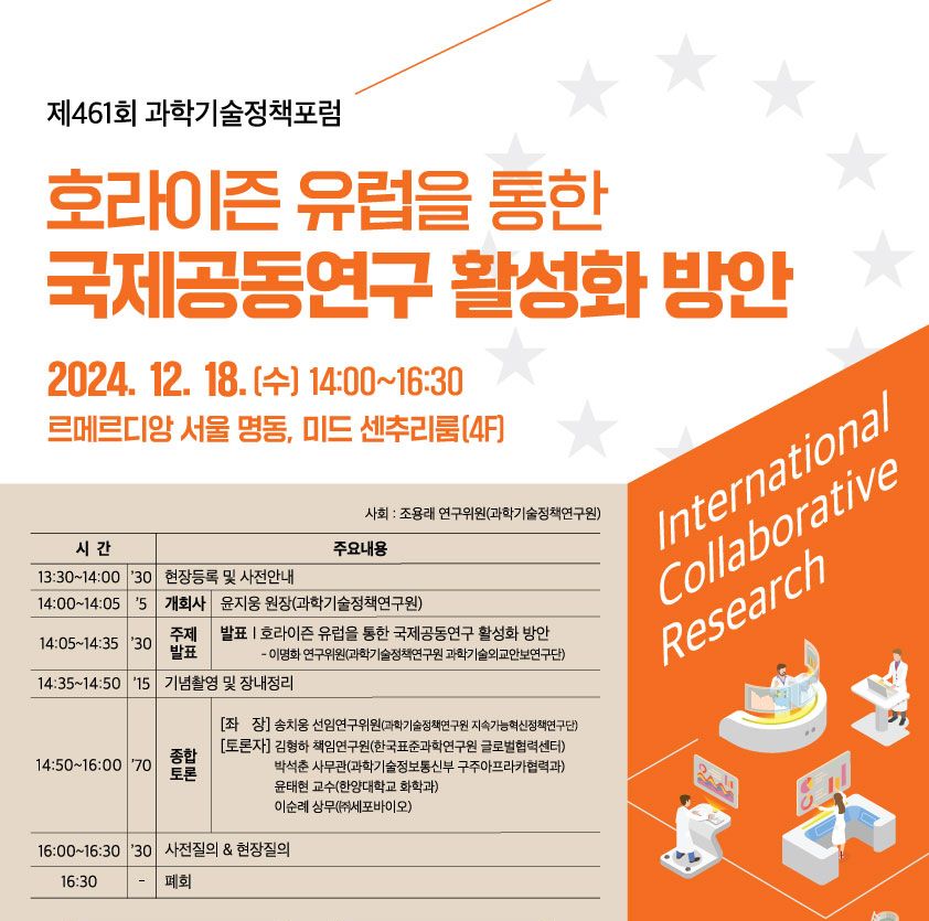 12월 18일(수) 과학기술정책연구원(#STEPI )가 주최하는 Open Science and Technology Policy Forum에 Horizon Europe에 참여한 경험이 있는 대학의 연구자 대표로 대표로 Tae Hyun Yoon 대표이사님께서 패널로 초청되셨습니다.